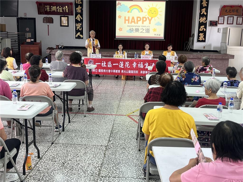 文化教育 2025 年 10 月 17 日 佛光人說幸福 三民社區共修喜悅人生 【人間社 陳馨強 宜蘭報導】國際佛光會中華總會宜蘭第五分會於10月14日礁溪鄉三民社區發展協會舉辦「一社區一蓮花」幸福講座,以「幸福」為主題,社區理事長夫人林貴蘭及社區50位長者共同參與,現場氣氛溫馨熱烈,充滿歡笑與感動。講座由國際佛光會檀講師陳林泉主持,宜蘭區一區督導長林美麗,人間佛教宣講員徐潔琳及徐孟怡與談,分享佛光山開山祖師星雲大師《人間佛教幸福百法.幸福》帶領聽眾從生活中認識幸福與快樂的真諦。活動一開始由徐潔琳與徐孟怡合唱人間音緣〈晨禱〉,柔美的歌聲為講座揭開序幕,讓與會者在清新的旋律中感受早晨新生的希望與祝福。林美麗首先分享〈快樂之道〉,她談到自己在農會服務多年,於退休前一年面臨工作壓力與挑戰,身心俱疲。經由學佛轉念,她選擇放下執著,提早退休,全心投入佛光會會長一職,展開人生新篇章。以佛陀面對「十大法難」的堅毅精神自勉,學習在逆境中不退縮,以信仰力量轉化壓力,從服務與奉獻中找到生命新的價值與真正的快樂。隨後由徐潔琳分享〈放光〉主題,她以活潑風趣的語氣結合護理師經驗,談到在醫院中看盡生老病死,更深刻體悟生命無常,提醒大眾應把握當下、活出意義。輕鬆風趣方式分享如何用六根來放光,善用身口意行為照亮自己、溫暖他人;並提及因母親的因緣加入佛光會,從義工服務中體驗以六根放光的喜悅。互動環節中,她邀請大家互說一句好話「彼此放光」,並加入有獎徵答,現場笑聲不斷、法喜充滿。最後,由徐孟怡分享〈快樂〉一文,談及「真正的快樂是什麼?」她回顧自己在未接觸信仰前,總以吃喝玩樂追求短暫的快樂;而學佛後逐漸體悟到,助人為樂才是人生最深層、最長久的幸福。她進一步分享多年來走入監獄與少觀所佈教的經驗,透過佛法與慈悲的陪伴,為受刑人帶來希望與溫暖,也讓自己體會到「施比受更有福」的幸福與快樂。陳林泉在結語中提醒大家,將講座中所聽到的佛法智慧落實於家庭生活,透過信仰的力量找到身心快樂的源泉,讓幸福在日常中生根發芽。講座最後由牛美雲音療老師帶領大眾合唱並舞動於人間音緣〈幸福是啥物〉的旋律中,隨著輕快節奏伸展身心。當歌詞唱到「幸福就是觀念轉變彼陣開始」時,與會者皆深有所感,呼應本次講座主題「幸福」的核心精神。在歌聲與笑聲中,為幸福講座畫下圓滿句點。 竹東大覺寺 捐贈「吉祥公益米」溫暖人心2025 年 10 月 16 日做真實世界的英雄 拒當虛擬世界的超人2025 年 10 月 18 日