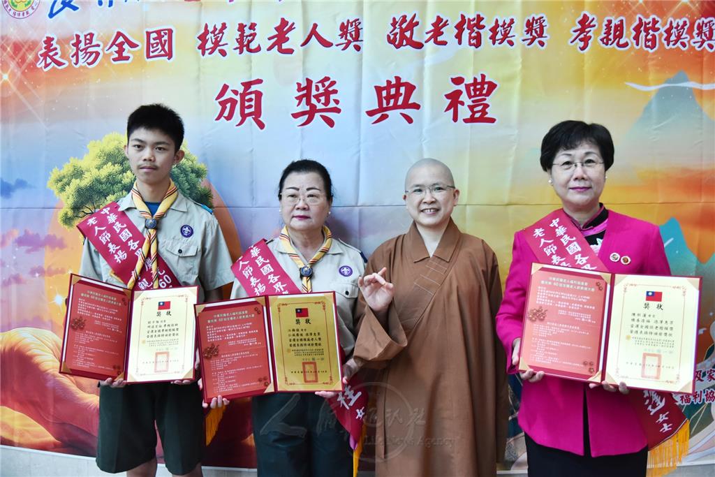 佛光榮耀 2025 年 10 月 18 日 第60屆老人節 3佛光人獲模範老人、敬老、孝親楷模 【人間社 連憶蘭 台北報導】慶祝第60屆老人節,中華民國老人福利協進會,10月18日在台北市中油大樓舉行頒獎典禮,頒發當選模範老人獎28人、敬老楷模獎25人、孝親楷模獎3人,共計56人獲獎,總統賴清德特電致賀。今年有3位佛光人獲獎,新莊佛光幼童軍團長江錦桂膺選「模範老人楷模」殊榮,基隆仁愛第一分會長陳秋蓬榮獲「敬老楷模」、岡山佛光童軍團行義童軍劉子維抱回「孝親楷模」,實乃典範。國際佛光會中華總會輔導法師知尚法師一行與會恭賀。江錦桂感謝佛光會的肯定,讓他有機會獲得這個獎項。新莊童軍團2019年成立,「童軍就是要日行一善,做好事、說好話、存好心」,有佛法的教育,就可以讓小朋友從小扎根,融入生活,從善做出發,培養品德教育,是最正確的道路。用歡喜心做義工的江錦桂,獲「衛福部志工銀牌獎」、「新北市杏福志工獎」肯定,秉持「不忘初心」,平日在學校擔任導護、愛心媽媽,散播「三好精神」到校園,持續深植善的幼苗,共創三好世界,共享人間淨土。陳秋蓬受佛光山開山祖師星雲大師演講,開示「拜佛、學佛,最重要是行佛」啟發,30年教職退休遇到佛光會、佛光山這棒的教團,承擔分會長是人生轉捩點。他帶領幹部、會員積極擴展會務,除推動T-Earth森林復育計畫,關懷弱勢家庭和社會公益捐獻,舉辦80多場生命教育十堂課、一社區一蓮花社區講座、捐血活動,並烹煮2萬碗臘八粥分贈各級學校、醫院等20多個單位,廣宣佛陀的慈悲與智慧。陳秋蓬護持道場、教育不遺餘力,推進供僧道糧的勸募、獲頒2024年佛光山百萬人興學委員會「興學推動菩提獎」、「2024年基隆市好人好事代表」、1994年「默默耕耘教師獎」,他強調:「生命要有價值,在佛光會平台找到生命的價值」。品學兼優的劉子維,加入岡山童軍團9年,培養出領導、組織能力。曾獲「孝順實踐優良獎」、高雄市年度模範生、「優秀童軍獎章」。他為父母分憂解勞,主動陪伴年邁祖父母聊天、看電視、運動、就醫。週末跟隨父親到工地打掃,課業之餘幫忙母親擺攤、收銀及照顧家中弟妹、料理家務,積極參加有獎金或獎狀比賽,幫助家庭經濟,盡其孝親敬老的人倫親情。除此,劉子維曾帶領同儕參加韓國、香港的童軍國際交流探索活動。多年來透過童軍服務奉獻活動、食物銀行義工,理解團隊力量、利他精神的可貴,學會關懷、服務擴及社會。 做真實世界的英雄 拒當虛擬世界的超人2025 年 10 月 18 日守護關懷校園安全 學習勇敢拒絕霸凌2025 年 10 月 18 日