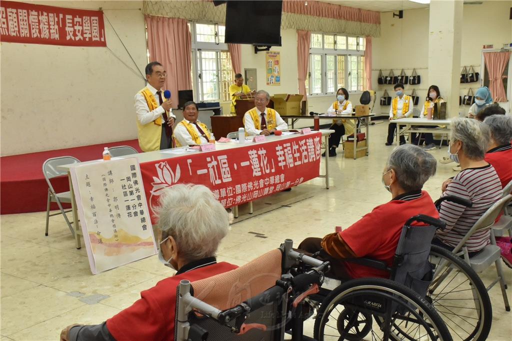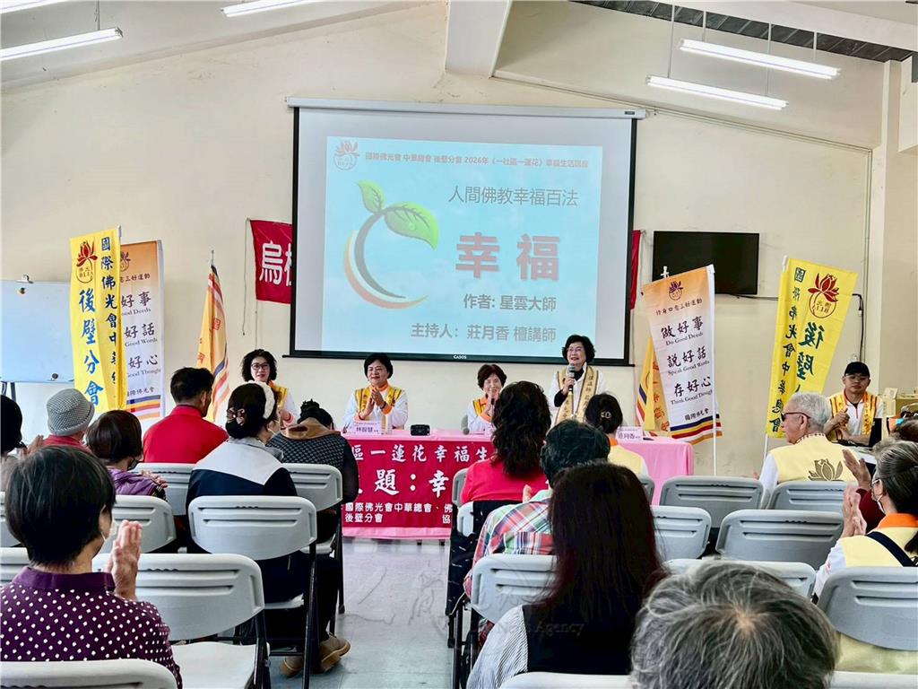 為推廣人間佛教理念、落實「一社區一蓮花」精神,國際佛光會中華總會岡山第一分會3月20日於高雄市岡山區協和社區長安據點舉辦幸福生活講座,以《幸福百法.命運》為題,邀請佛光會檀講師郭明傳主持,國際佛光會高新二區督導吳文得、邱榮富與談,協和社區理事長伍宥緁、總幹事周月英及45位社區民眾參與。